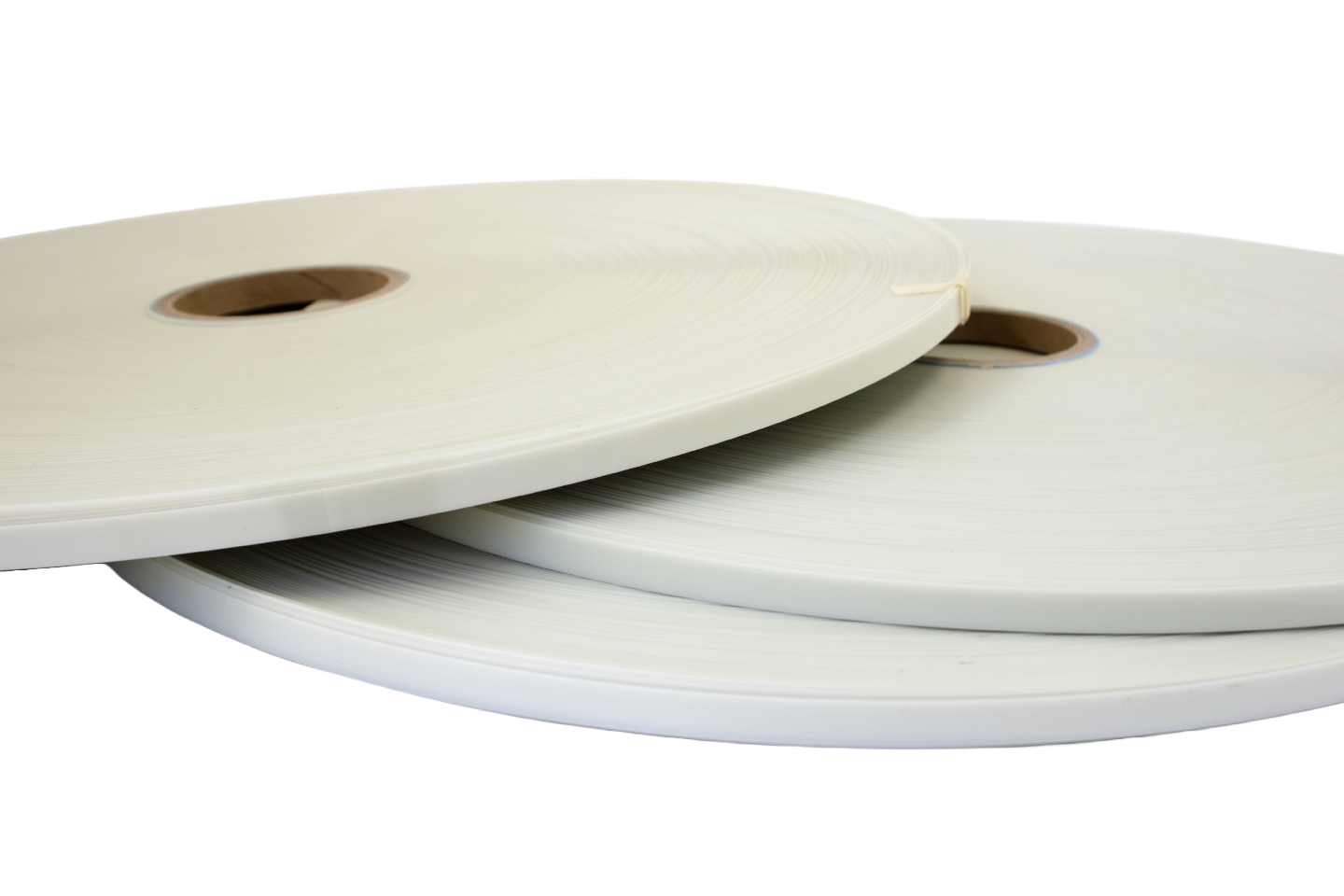 General industrial use requiring thin, strong, non-conductive film strips.